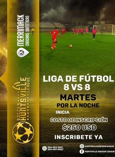 Únete a la Huntsville Soccer League y demuestra tu talento en nuestro emocionante torneo 8 vs 8.